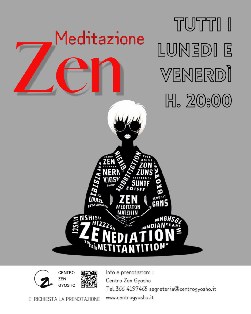 La pratica principale su cui lo Zen si basa per aiutare tutti gli esseri è la meditazione, che nello Zen viene chiamata Zazen. È una meditazione per risvegliarsi alla Vera Vita, per aiutarci a superare i nostri condizionamenti e attaccamenti che velano la realtà dell’esistenza umana.